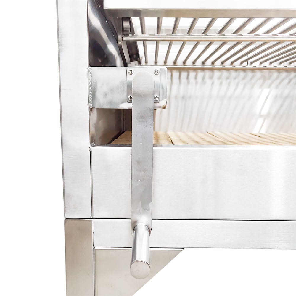Three distinct grilling zones – a height-adjustable main grate, a secondary grate, and a specialized griddle – ensure that every culinary vision becomes a delicious reality. Lighting charcoal becomes a breeze with the gaucho-style brasero in the firebox. For your convenience, the grill comes equipped with a bottle opener and casters, ensuring mobility and leisure go hand in hand. Plus, the included cover ensures protection when not in use.