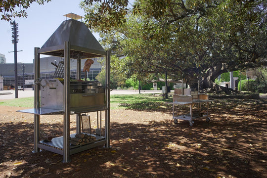 Meet the Silver Bullet by Tagwood BBQ - the pinnacle of Argentine wood & charcoal grilling. Fashioned from impeccable 304 stainless steel, it promises both elegance and endurance. Its six versatile grilling surfaces, inclusive of a swivel griddle, warming rack, and 16 meat hooks, unlock a world of culinary creativity. Advanced features like height-adjustable grates and heat-retaining firebricks not only optimize cooking but also prolong the grill's vitality. The side prep table, integrated bottle opener, shovel, and coal rake seamlessly merge luxury with functionality. For those passionate about grilling, the Silver Bullet is more than a grill; it's a statement. Elevate your outdoor feasts and become the talk of the town. Dive into a world where style meets gastronomic excellence.