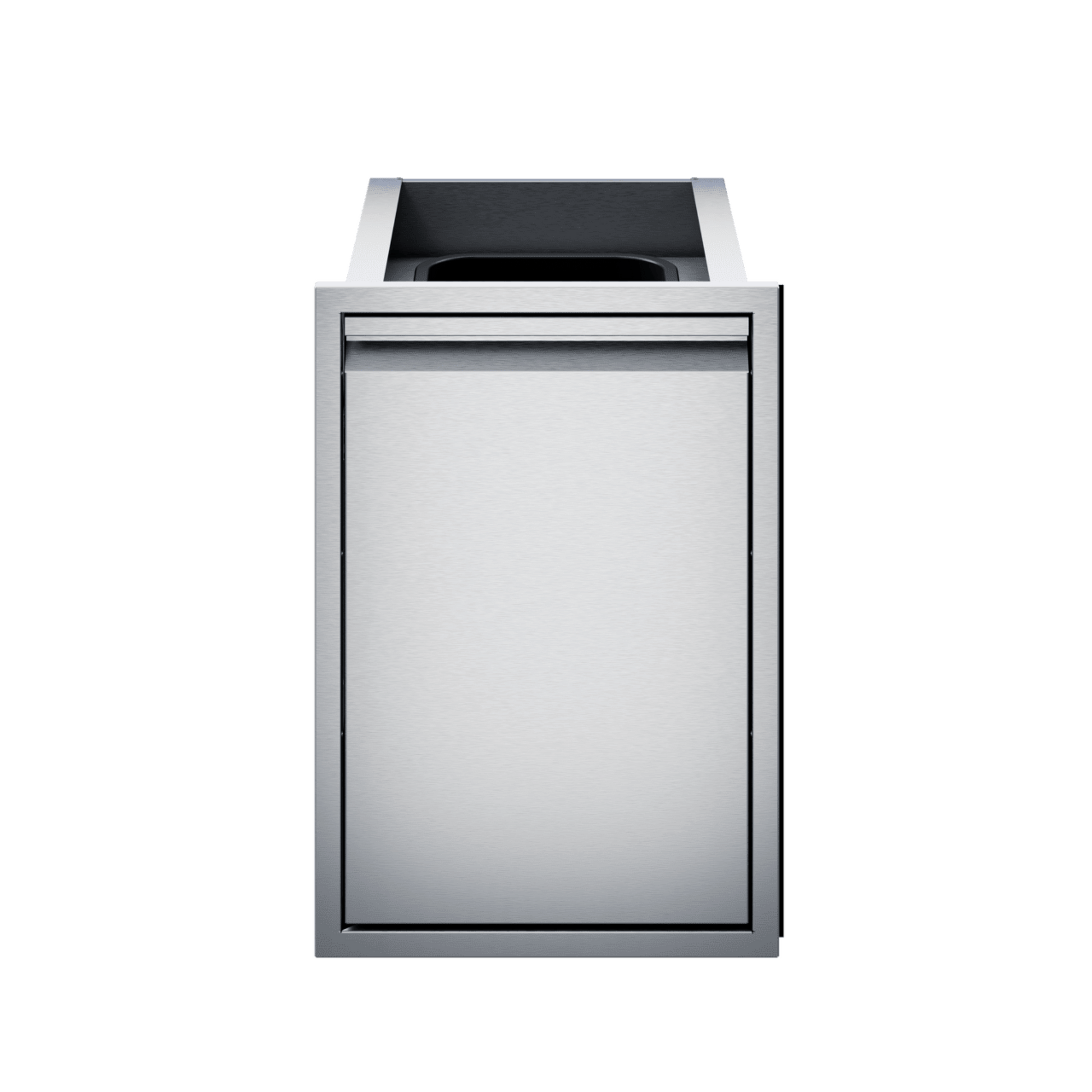 Keep your waste discretely tucked away with the Twin Eagles 18 inch Trash Drawer. It holds an included larger capacity trash container and has a full pullout drawer for easy access. Pair it with the Twin Eagles trash chute for the most efficient and discrete trash disposal system.