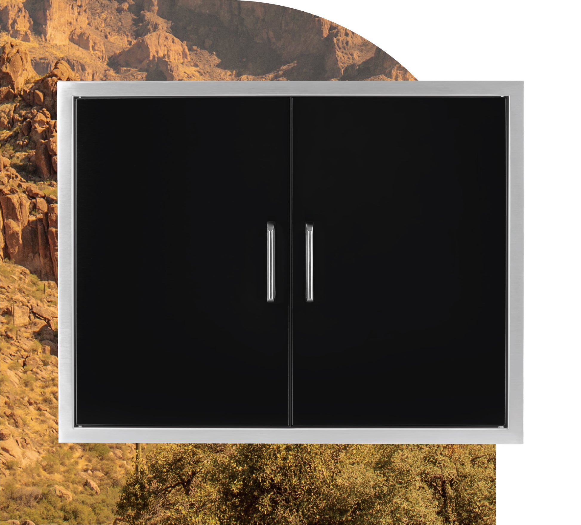 Wildfire's 38 X 24 vertical black stainless steel double access door is the perfect addition to elevate your outdoor kitchen into a prime entertainment space.