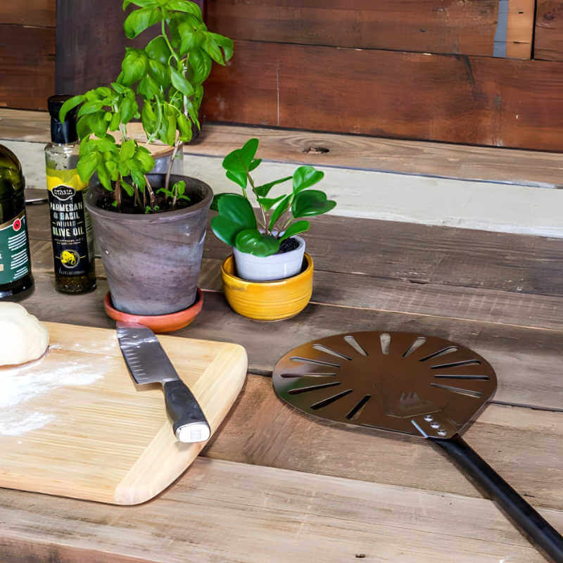 Elevate your pizza-making game with the WPPO 9-inch Round Aluminum Pro Turning Pizza Peel, a tool that blends innovation, safety, and convenience. This pizza peel is designed to cater to the needs of those with larger outdoor ovens, ensuring every pizza-making experience is not only successful but also enjoyable. The Extended 48-inch Handle is a standout feature of this pizza peel. Its length is specifically designed to keep your hands and arms at a comfortable distance from the sizzling heat of the oven. This thoughtful design aspect means you can focus on perfecting your culinary creations without the worry of accidental burns or discomfort. Crafted from high-quality aluminum, the 9-Inch Round Peel is the ideal size for effortlessly rotating pizzas and other foods inside your oven. The aluminum construction ensures the peel is both lightweight and durable, striking the perfect balance between ease of use and long-lasting performance.